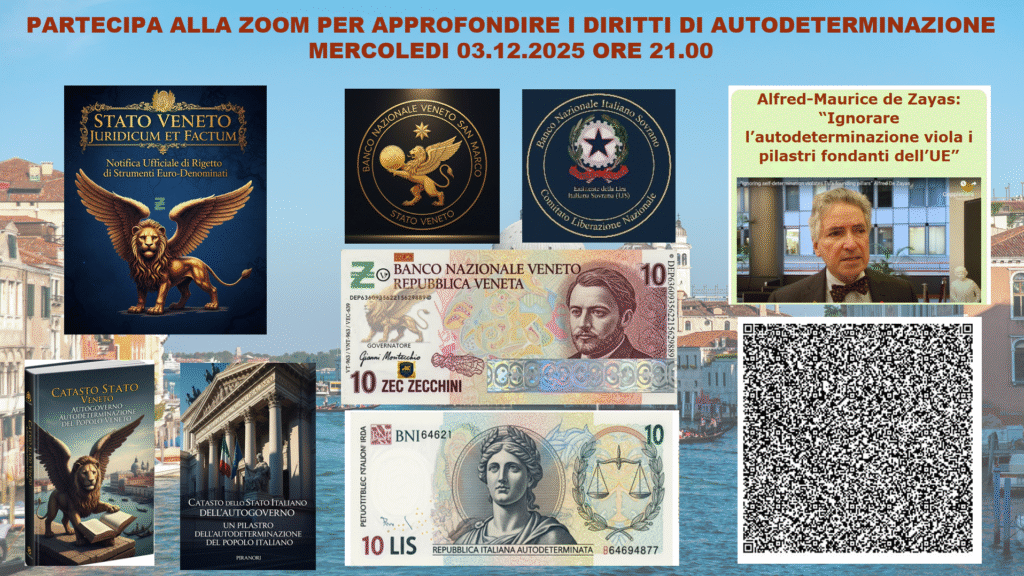Siete invitati MERCOLEDI 10.12.25 alle ore 21.00, alla riunione zoom del CLNI e dello “Stato Veneto in autodeterminazione” in cui approfondiremo i seguenti punti: