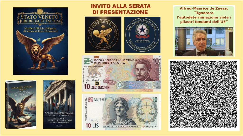 Siete invitati MERCOLEDI 26.11.25 alle ore 21.00, alla riunione zoom del CLNI e dello “Stato Veneto in autodeterminazione” in cui approfondiremo i seguenti punti: