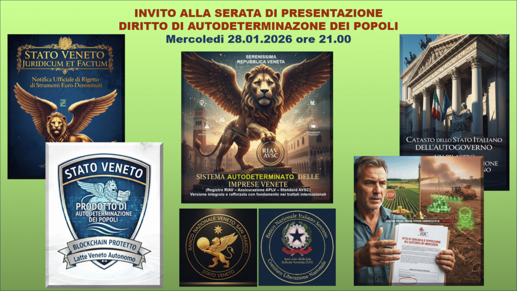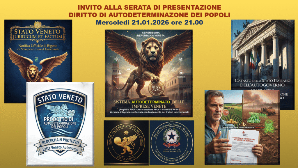 Siete invitati MERCOLEDI 28.01.26 alle ore 21.00, alla riunione zoom del CLNI e dello “Stato Veneto in autodeterminazione” in cui approfondiremo i seguenti punti: