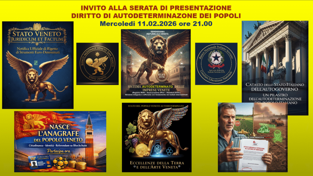 Siete invitati MERCOLEDI 11.02.26 alle ore 21.00, alla riunione zoom del CLNI e dello “Stato Veneto in autodeterminazione” in cui approfondiremo i seguenti punti: