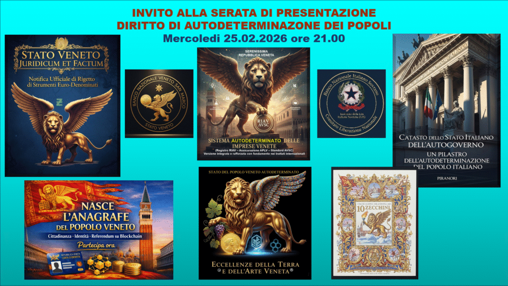 Siete invitati MERCOLEDI 25.02.26 alle ore 21.00, alla riunione zoom del CLNI e dello “Stato Veneto in autodeterminazione” in cui approfondiremo i seguenti punti: